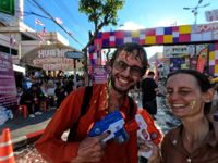 Nach drei Tagen Großstadttrubel in Bangkok, inklusive Besuch des Smaragd-Buddhas, fahren wir endlich zurück zum Meer! Wir folgen so eng wie möglich dem Küstenverlauf des Golfs von Thailand – und zelten fast jede Nacht an einsamen Stränden. Wie erhofft weht hier mehr Wind, und doch sorgt die Brise wie auch die Wassertemperatur des Meeres nur geringfügig für Abkühlung. Erfolgsversprechender ist da schon Songkran, das thailändische Neujahrsfest. Auf der Malaiischen Halbinsel säumen nun vor allem Palmenplantagen den Wegesrand, während wir auf unserer Fahrt gen Süden schließlich die Sonne unterquert haben, die für uns ab sofort und wohl für längere Zeit nur noch im Norden zu sehen sein wird.