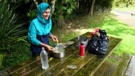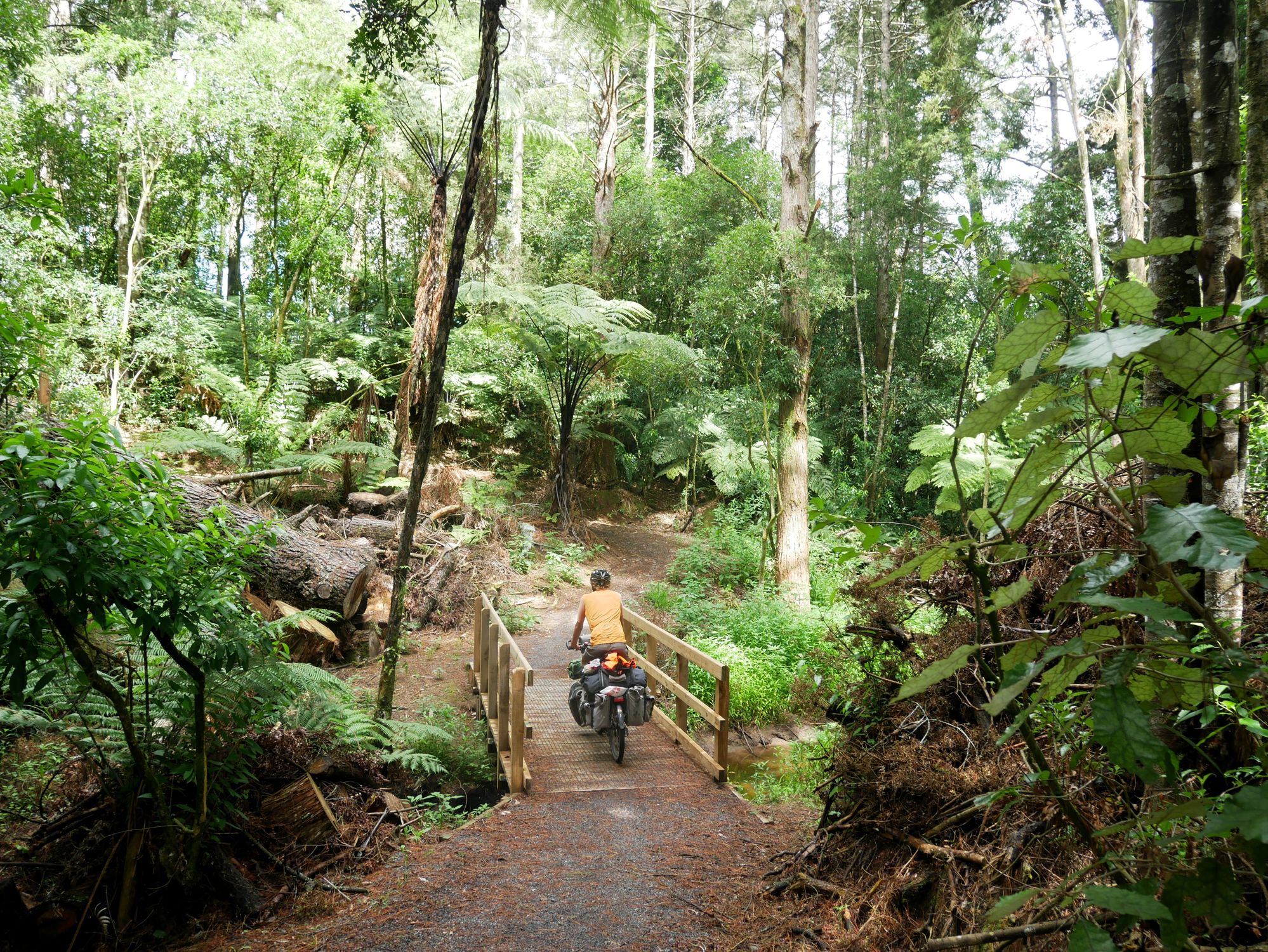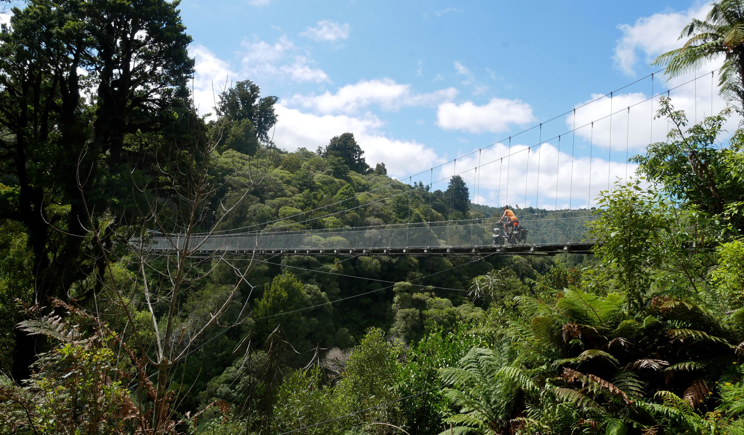 Kim und Owen sind unsere Rettungsinsel in dem zweiwöchigen Meer aus Regen, über den wir bereits in der letzten Episode berichtet haben. Bei ihnen dürfen wir die Tage bis zum nächsten Sonnenschein aussitzen und Kim zeigt uns in dieser Zeit nicht nur ihre Farm, sondern auch einen magischen Ort voller „Glowworms“. Außerdem ermöglichst es uns Kim, den meistgewanderten Wanderweg Neuseelands zu bewandern, die Tongariro Alpine Crossing. Als das Wetter es endlich wieder zulässt, überschreiten wir nicht nur unsere 50.000-Kilometer-Marke, sondern erreichen auch den berühmten Timber Trail – ein 80 km langer Radweg durch abgelegene Waldgebiete, der vor allem auch mit den längsten und höchsten Radweg-Hängebrücken Neuseelands auftrumpft. Schließlich erreichen wir Auckland, wo unser Host Libby eine riesige Hilfe bei unseren Flugvorbereitungen ist – wofür wir wegen einer spontanen Flugplanänderung von Air New Zealand auch nicht besonders viel Zeit haben. Wohin unser Weiterflug geht? Auch das klären wir in dieser Episode auf!