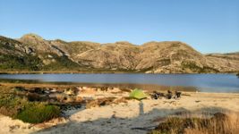 Beautiful rocky landscapes next to a road reminding of high mountains