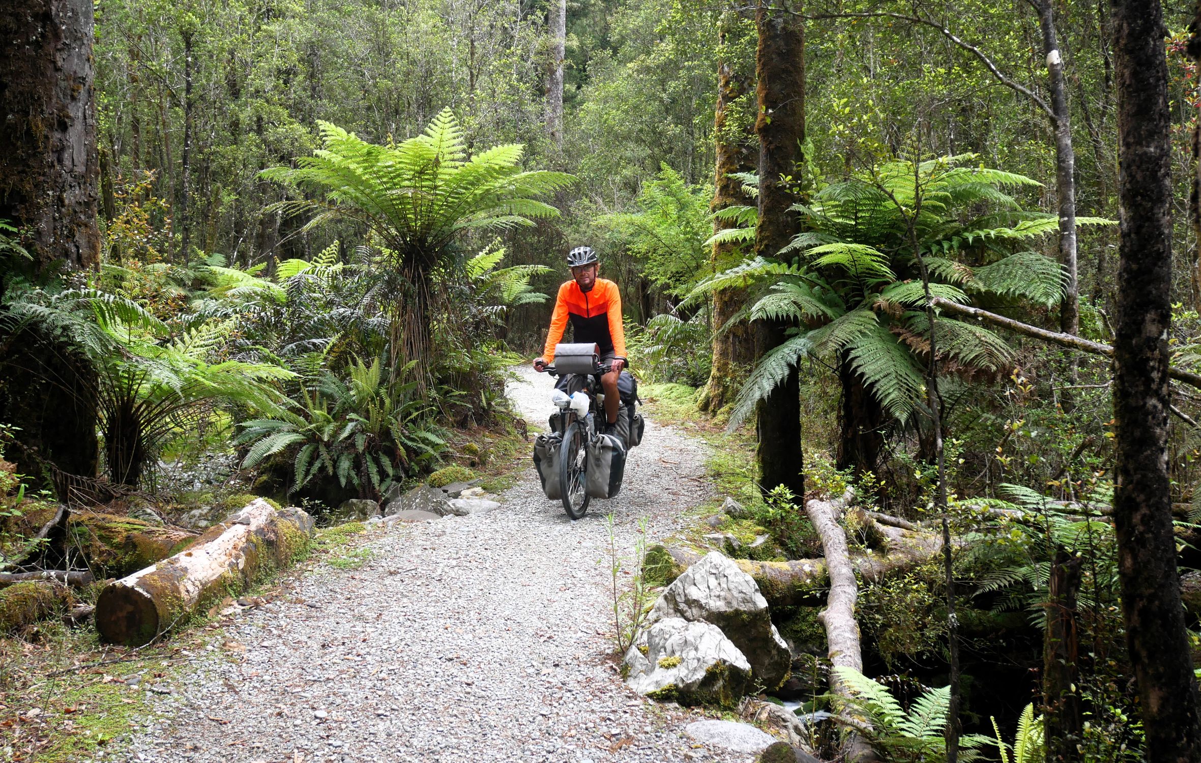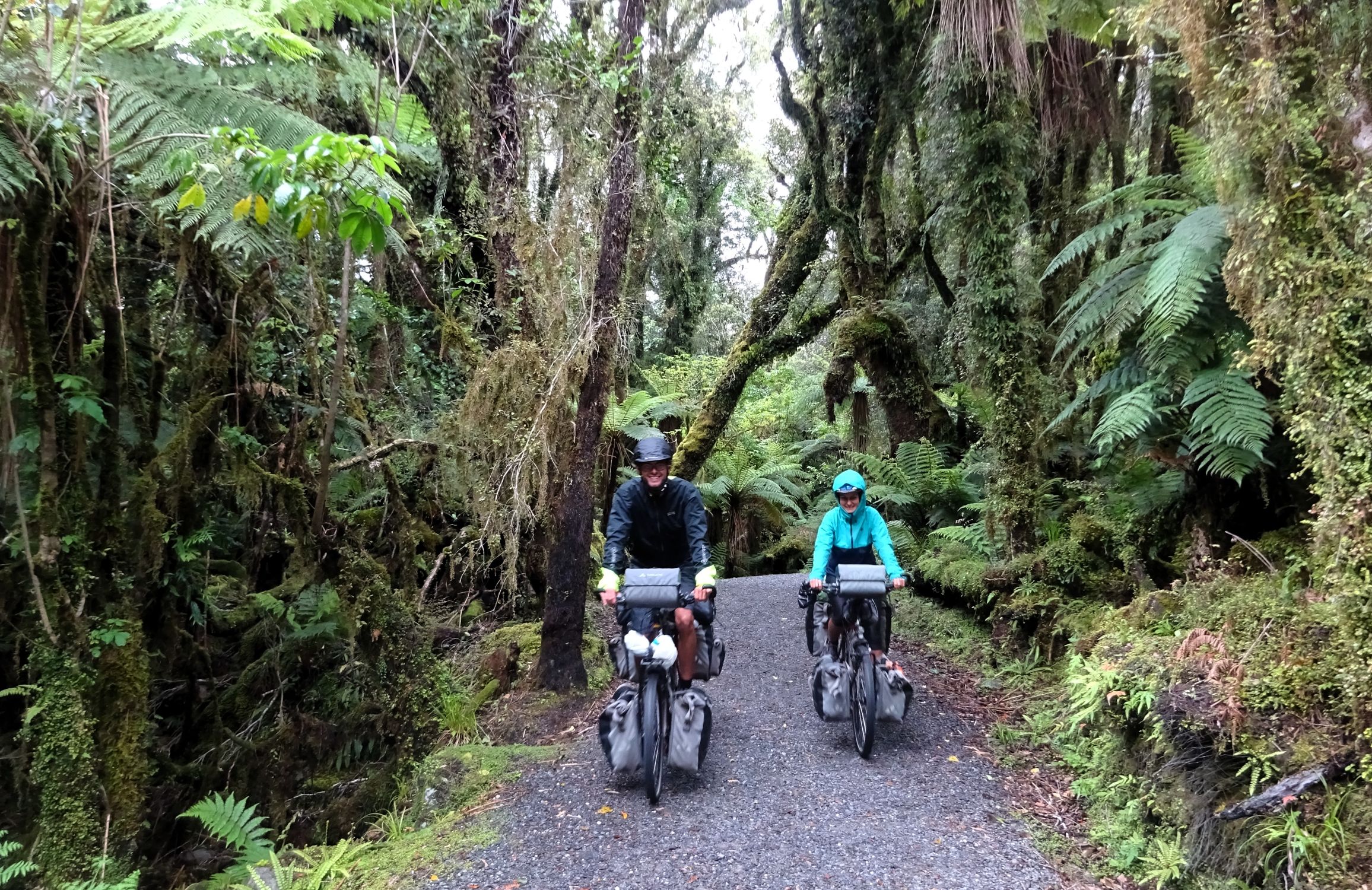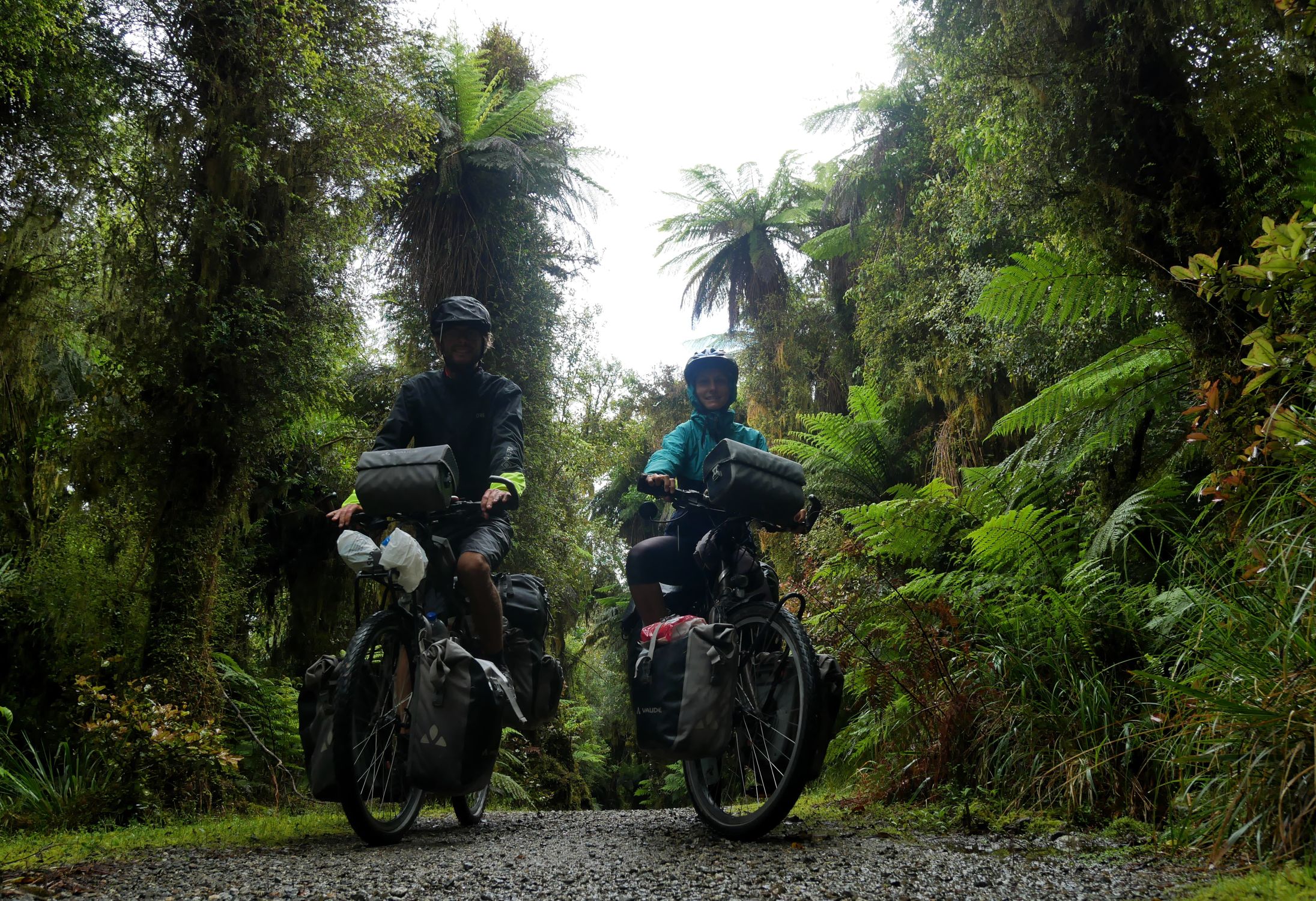 After the rather alpine region of Otago, we set off for the west coast of the South Island – and the landscape changes completely. Here, everything is bursting with moist, green, lush rainforest. The forest consists of moss-covered deciduous trees and large tree ferns. It’s a temperate rainforest, and accordingly, it rains about four times more per year than in Germany. At the same time, glaciers from the Southern Alps are pushing their way down into the rainforest. It’s not only the rainiest but also the most sparsely populated region of New Zealand that we’ve traveled through. In this episode, we tell about how we coped with the rain, the cheeky keas, and the heart of the west coast from a cyclist’s perspective: the West Coast Wilderness Trail!