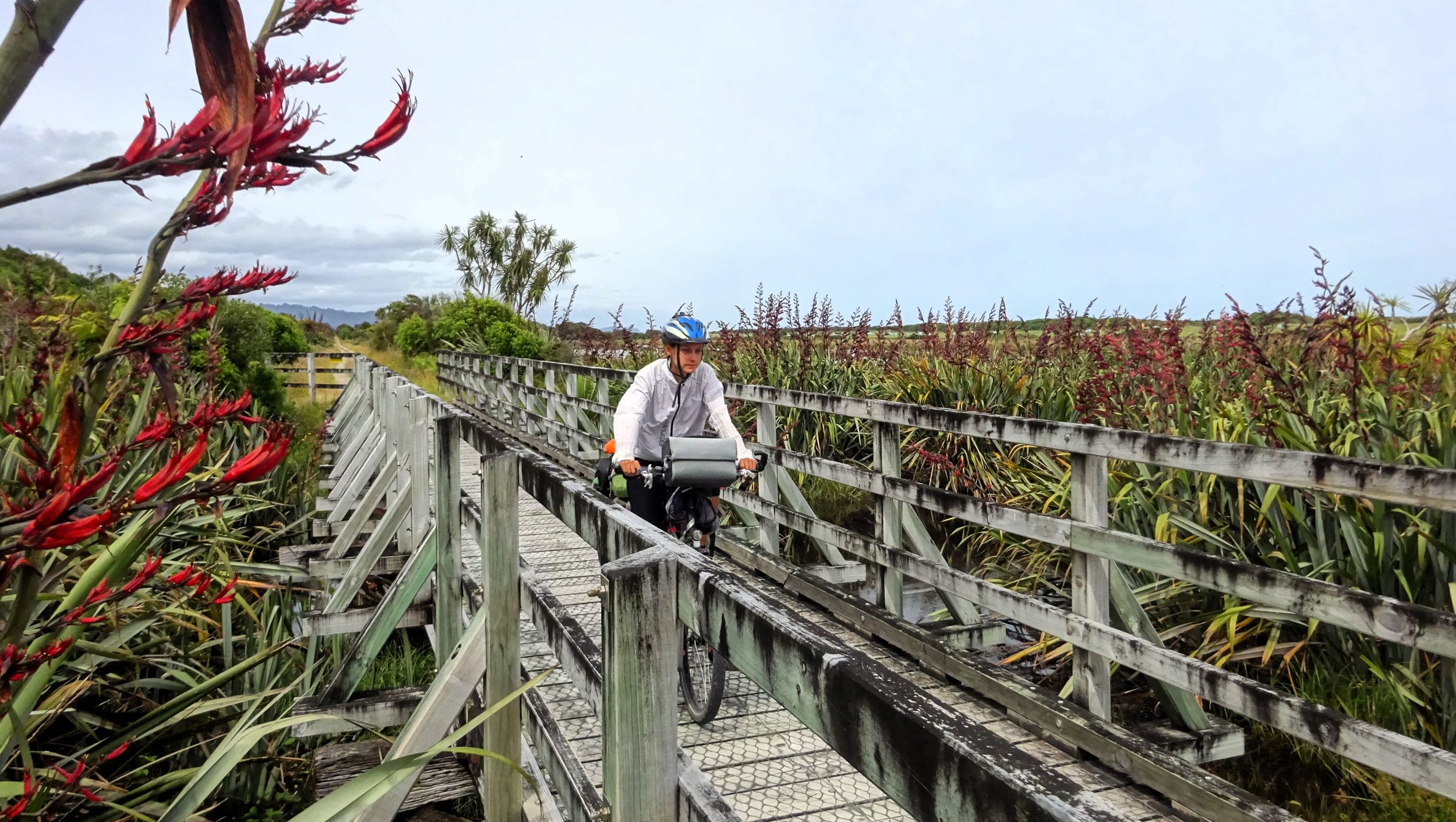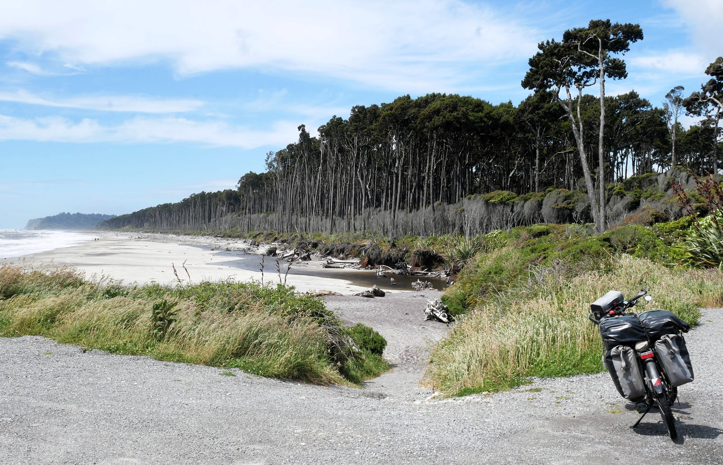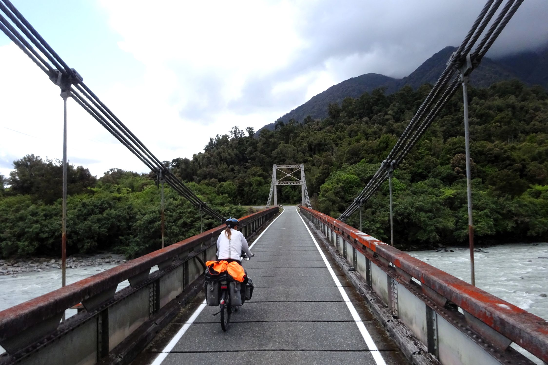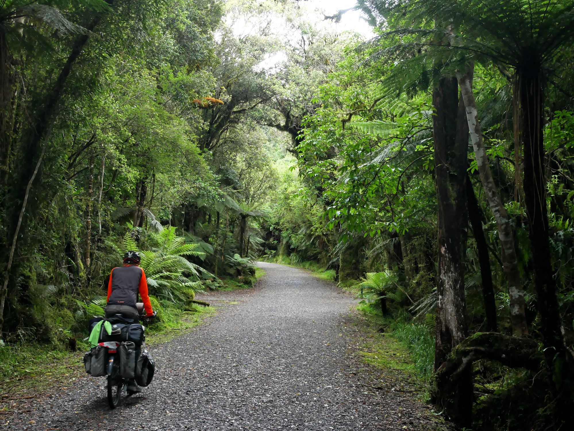 After the rather alpine region of Otago, we set off for the west coast of the South Island – and the landscape changes completely. Here, everything is bursting with moist, green, lush rainforest. The forest consists of moss-covered deciduous trees and large tree ferns. It’s a temperate rainforest, and accordingly, it rains about four times more per year than in Germany. At the same time, glaciers from the Southern Alps are pushing their way down into the rainforest. It’s not only the rainiest but also the most sparsely populated region of New Zealand that we’ve traveled through. In this episode, we tell about how we coped with the rain, the cheeky keas, and the heart of the west coast from a cyclist’s perspective: the West Coast Wilderness Trail!