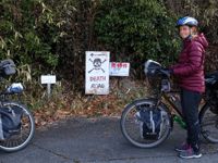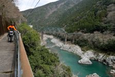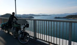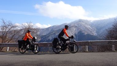 The second half of our time in Japan turns out to be colder than the first, likely due to a persistent north wind. Our shorts stay buried deep in our panniers; instead, we often find ourselves pulling our down jackets on even at night in addition to our sleeping bags. We also take a big gamble and ignore the barriers and warning signs indicating that the 1,400-meter-high pass on Mt. Tsurugi is actually closed in winter. But Japan wouldn’t be Japan if it didn’t have some comforts to counter these conditions. Heated toilet seats, for one, but above all the bathhouses fed by hot spring water — the famous onsen — not only warm us up but also come in very handy after days of cycling without a shower! Aside from the many, many quiet mountain roads with pleasantly gentle inclines, we also cycle along Japan’s most famous bike route and explore the ancient imperial city of Kyoto, as well as the Shimano Bicycle Museum and the city of Hiroshima.