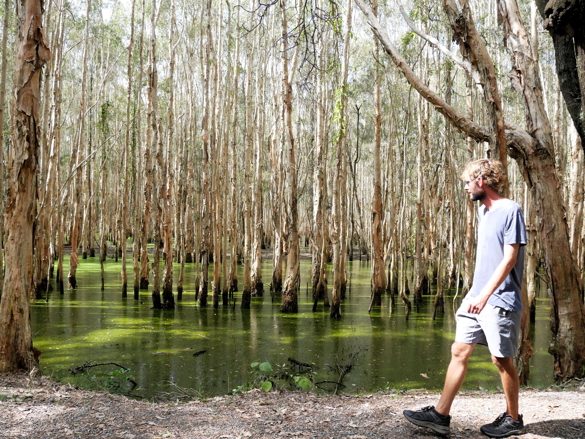 Nach dem Outback kehren wir in dieser Episode in die Nähe der Ostküste zurück. Wir folgen diversen mehr oder auch weniger familienfreundlichen Rail Trails und dank einer ganzen Reihe von fantastischen Warmshowers-Hosts im Raum Brisbane können wir nach 40 Zeltnächten am Stück auch mal wieder in einem Bett schlafen und uns gleichzeitig ein wenig tiefer mit den Australiern über ihr Land austauschen. Wir baden nach langer Zeit mal wieder im Meer und fahren kilometerlang (bei Ebbe) auf einem Traumstrand am Wasser entlang. Außerdem sehen wir uns scheinbaren und tatsächlichen Angriffen diverser Vögel ausgesetzt und besprechen nebenbei, was an der Beuteltierfauna eigentlich so speziell ist.