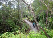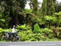 Nach der recht alpin-trockenen Region Otago brechen wir auf zur Westküste der Südinsel – und die Landschaft ändert sich einmal komplett. Hier strotzt alles nur so vor feuchtem, grünem, wucherndem Urwald. Der Wald besteht aus vermoosten Laubbäumen und großen Baumfarnen. Es ist ein gemäßigter Regenwald und entsprechend regnet es übers Jahr auch ungefähr viermal mehr als in Deutschland. Gleichzeitig schieben sich Gletscher von den Neuseeländischen Alpen bis in den Regenwald herunter. Es ist nicht nur die verregnetste, sondern auch die am dünnsten besiedelte Region Neuseelands, durch die wir hier gefahren sind. Wir berichten in dieser Episode davon, wie wir mit dem Regen klargekommen sind, von den frechen Keas und vom Herzstück der Westküste aus Radfahrersicht: Dem West Coast Wilderness Trail!