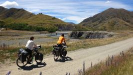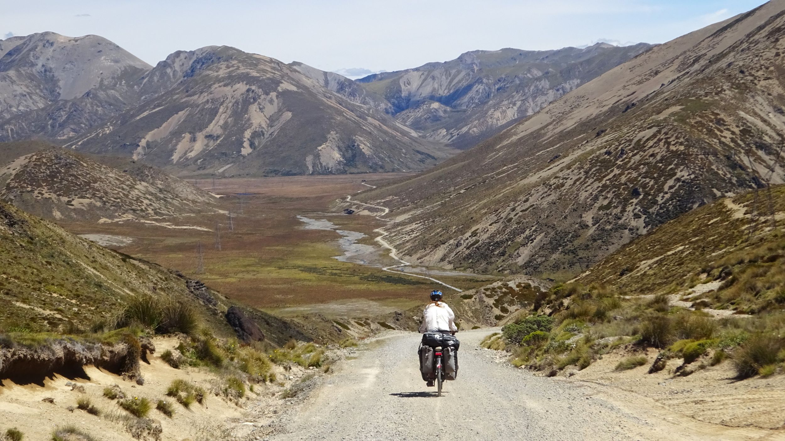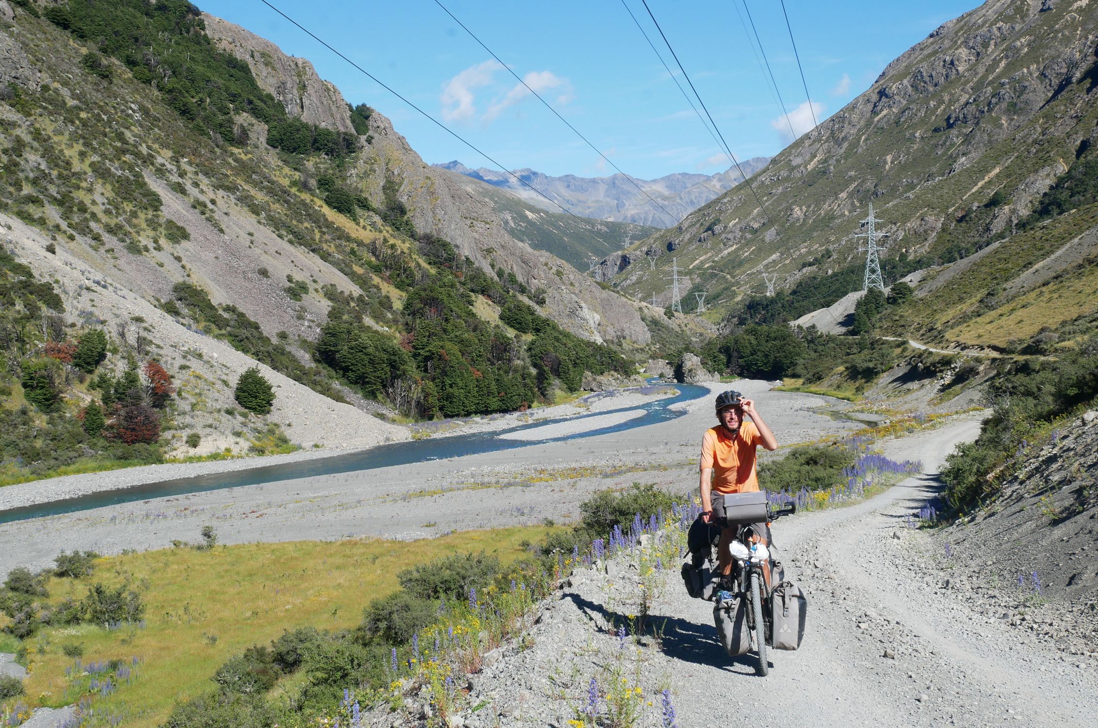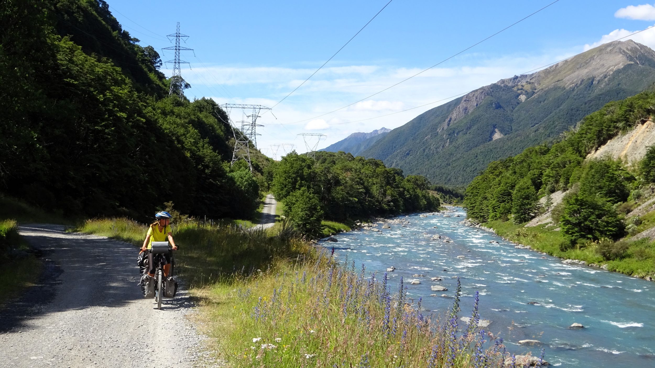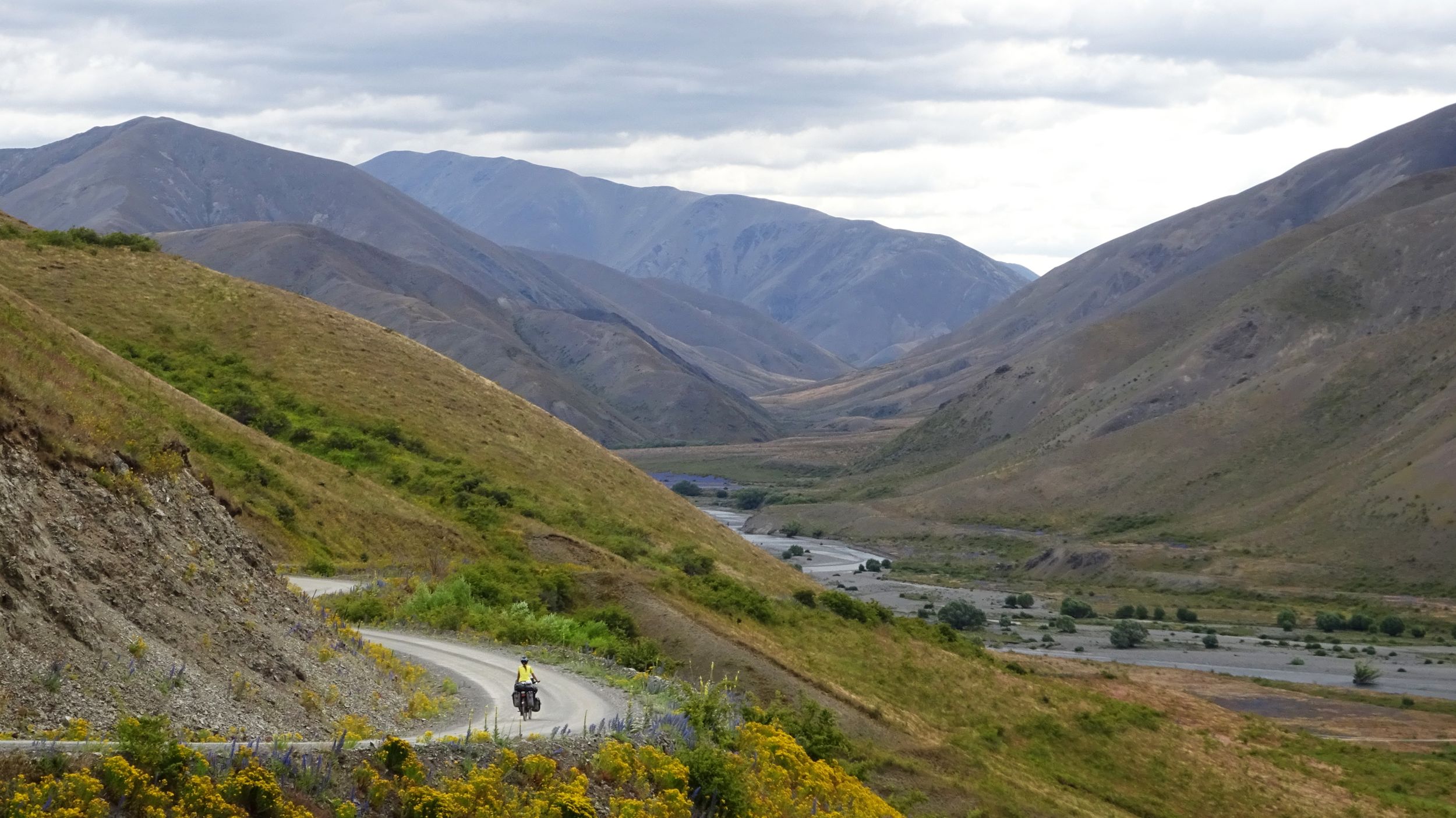 Wir haben noch eine gute Woche Zeit, bevor unsere Fähre auf die Nordinsel geht – und die nutzen wir für einen ausgedehnten Schlenker über die Rainbow Road und Molesworth Route. Es ist ein spektakulärer Umweg in leerem unbewohntem Gebirgsland, durch karge weite Täler, entlang reißender türkiser Flüsse, über kurze aber sehr steile Pässe (darunter auch der höchste Pass Neuseelands) und das alles bei heftigen Sturmböen aus allen Richtungen. Dabei erinnert uns nicht nur die Landschaft, sondern auch die Qualität der Schotterstraßen an unsere Abenteuer in Zentralasien. Im Süden der Nordinsel erreichen wir an einer unscheinbaren Straßenkreuzung den Punkt unserer Tour, der am weitesten von unserem Tourstart am Karlsruher Schloss entfernt ist – ab jetzt geht’s also im Prinzip wieder Richtung Heimat! Ansonsten beschäftigt uns auf der Nordinsel bisher vor allem ein Thema: Regen. In den 10 Tagen seit der Fährüberfahrt haben wir die Sonne kaum gesehen, das Zelt nass einzupacken wird zum Standard. Doch zu unserem Glück werden wir von der neuseeländischen Gastfreundschaft nicht im Stich gelassen.