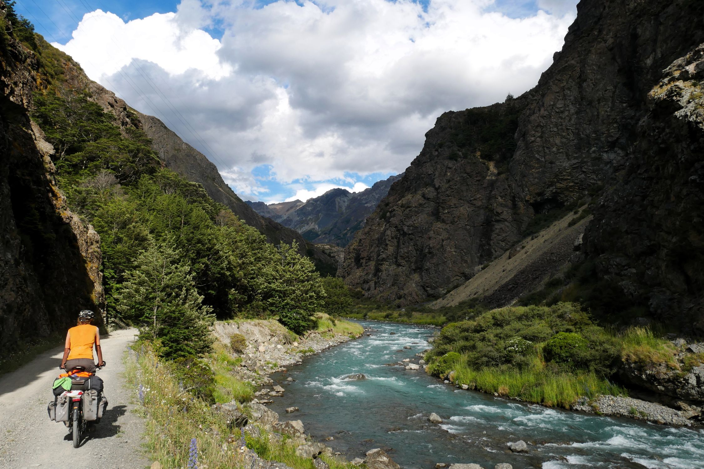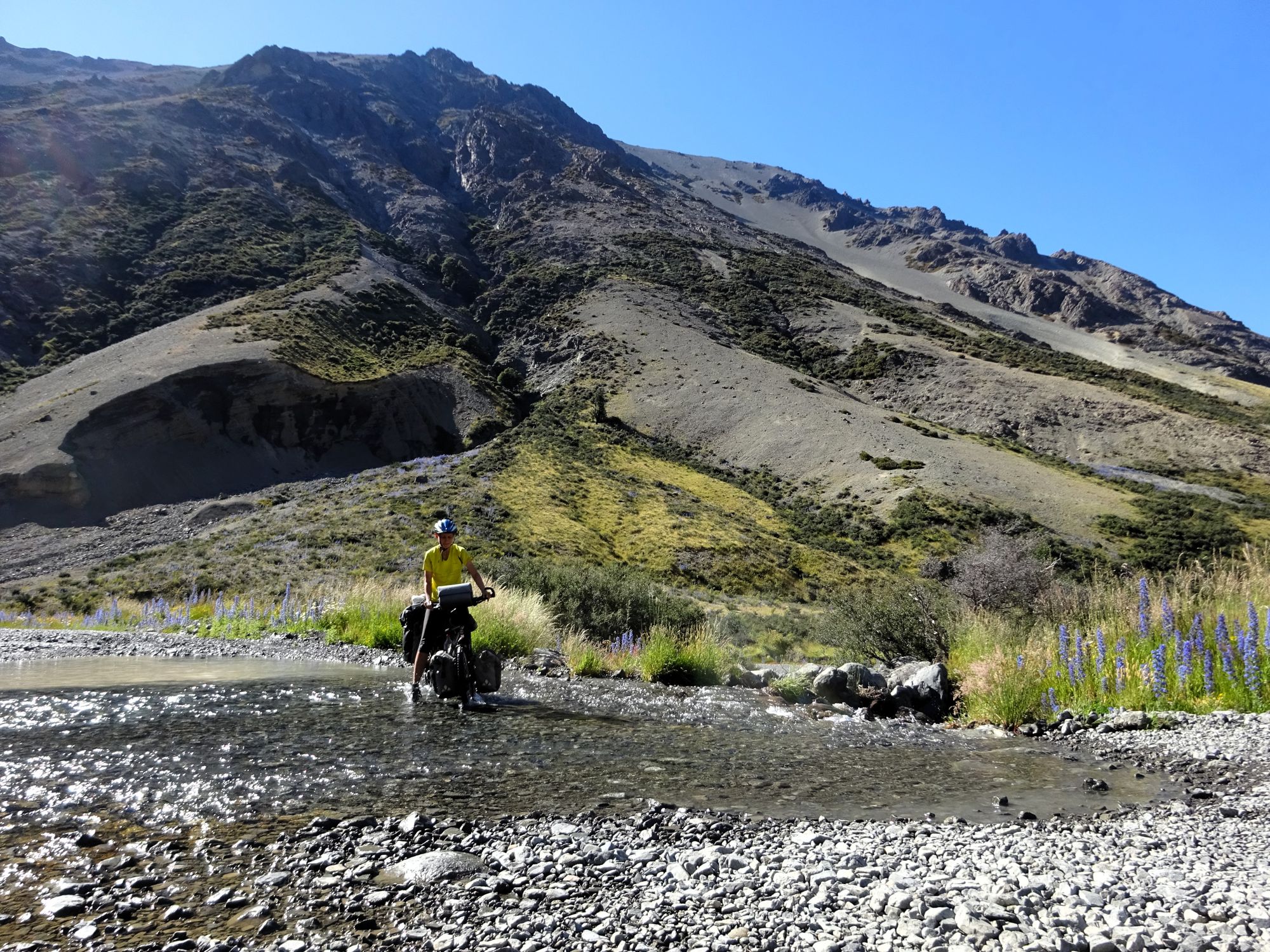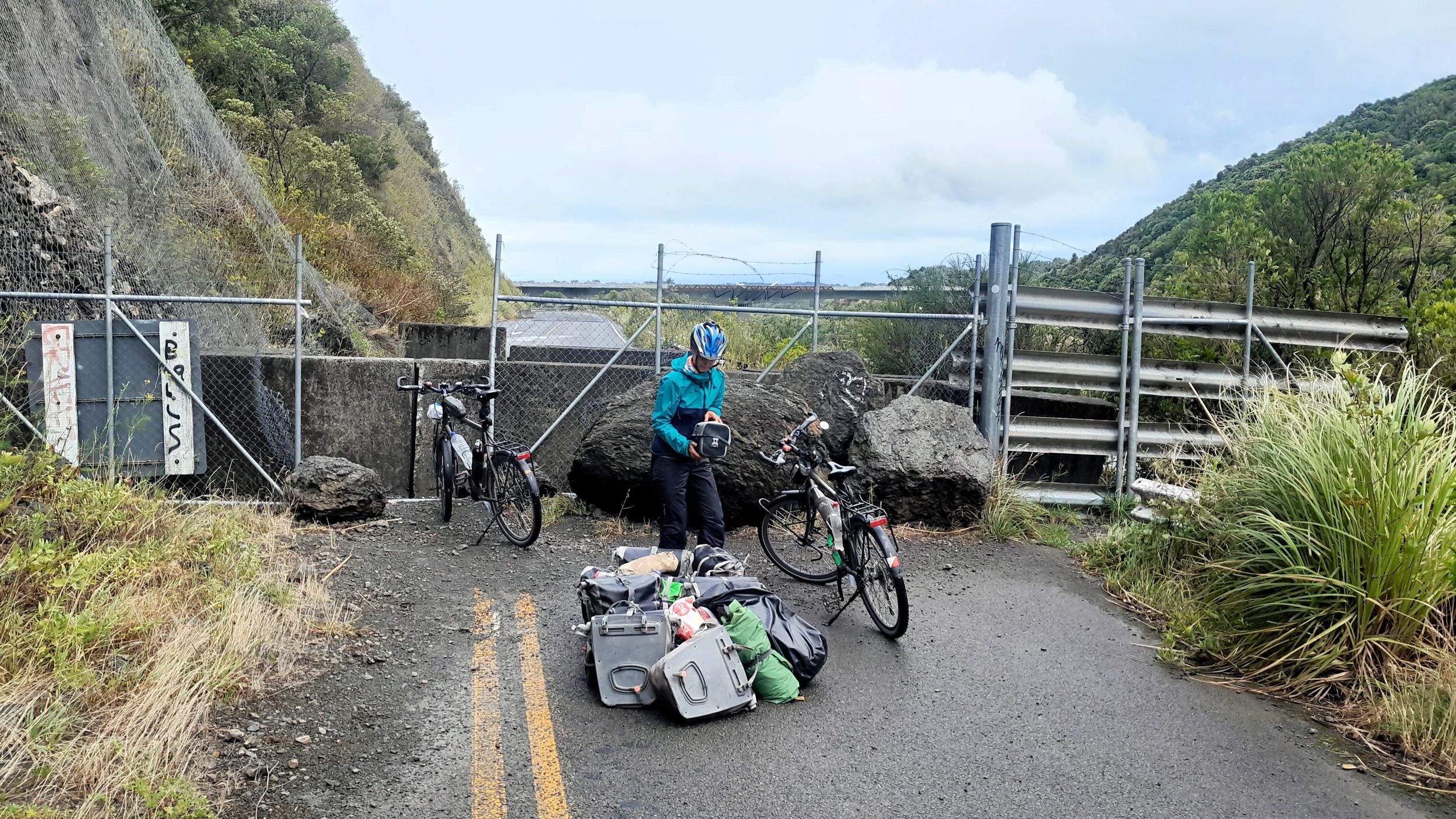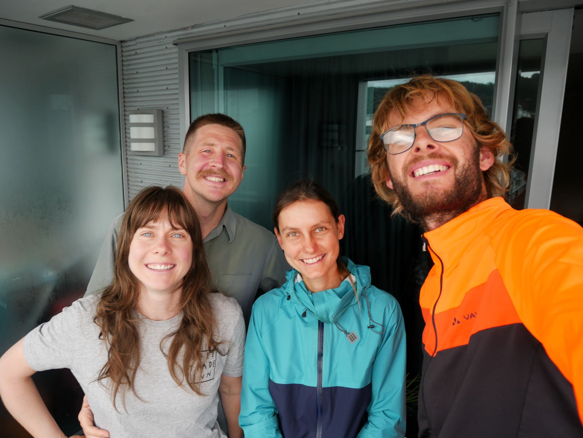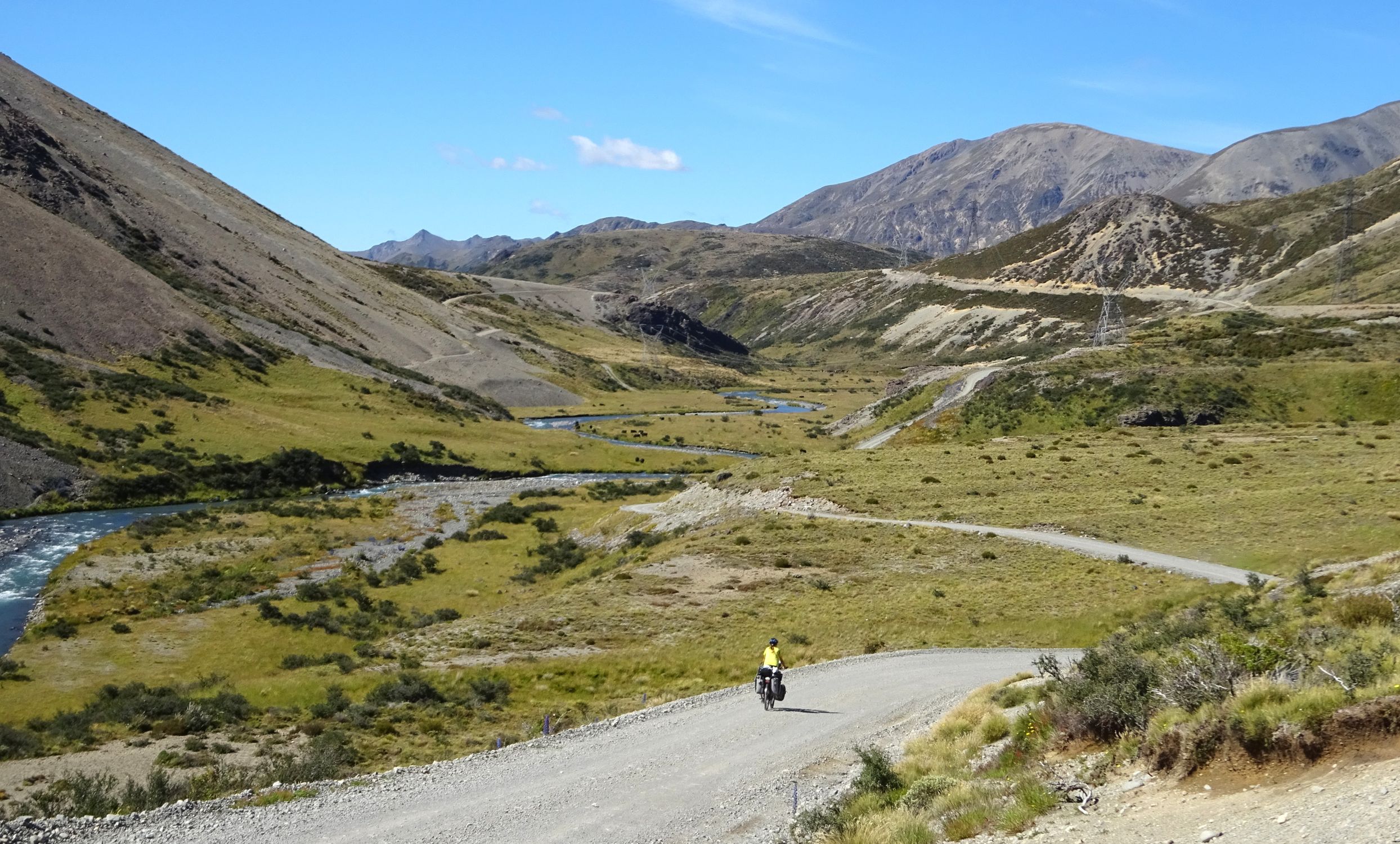 Wir haben noch eine gute Woche Zeit, bevor unsere Fähre auf die Nordinsel geht – und die nutzen wir für einen ausgedehnten Schlenker über die Rainbow Road und Molesworth Route. Es ist ein spektakulärer Umweg in leerem unbewohntem Gebirgsland, durch karge weite Täler, entlang reißender türkiser Flüsse, über kurze aber sehr steile Pässe (darunter auch der höchste Pass Neuseelands) und das alles bei heftigen Sturmböen aus allen Richtungen. Dabei erinnert uns nicht nur die Landschaft, sondern auch die Qualität der Schotterstraßen an unsere Abenteuer in Zentralasien. Im Süden der Nordinsel erreichen wir an einer unscheinbaren Straßenkreuzung den Punkt unserer Tour, der am weitesten von unserem Tourstart am Karlsruher Schloss entfernt ist – ab jetzt geht’s also im Prinzip wieder Richtung Heimat! Ansonsten beschäftigt uns auf der Nordinsel bisher vor allem ein Thema: Regen. In den 10 Tagen seit der Fährüberfahrt haben wir die Sonne kaum gesehen, das Zelt nass einzupacken wird zum Standard. Doch zu unserem Glück werden wir von der neuseeländischen Gastfreundschaft nicht im Stich gelassen.