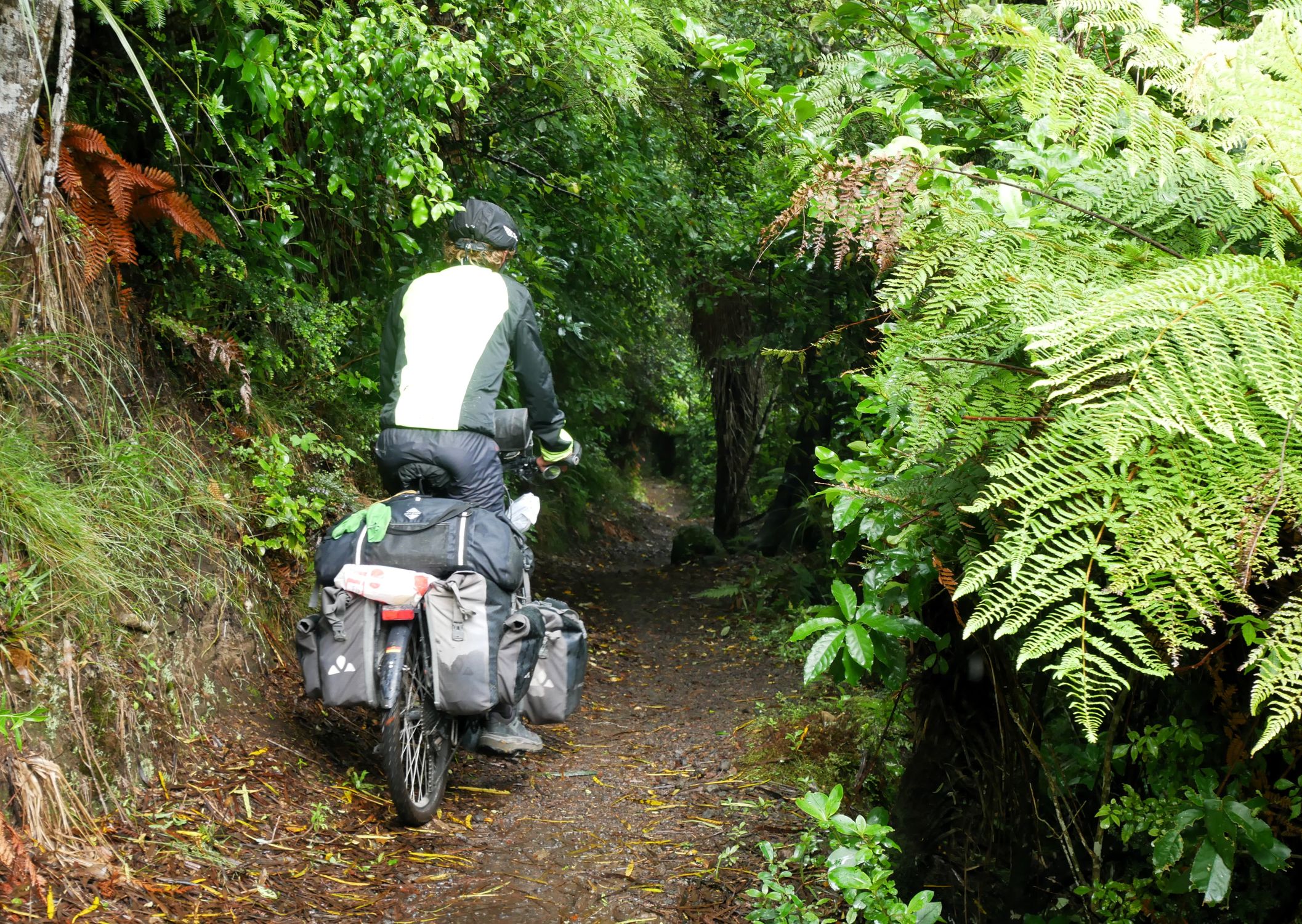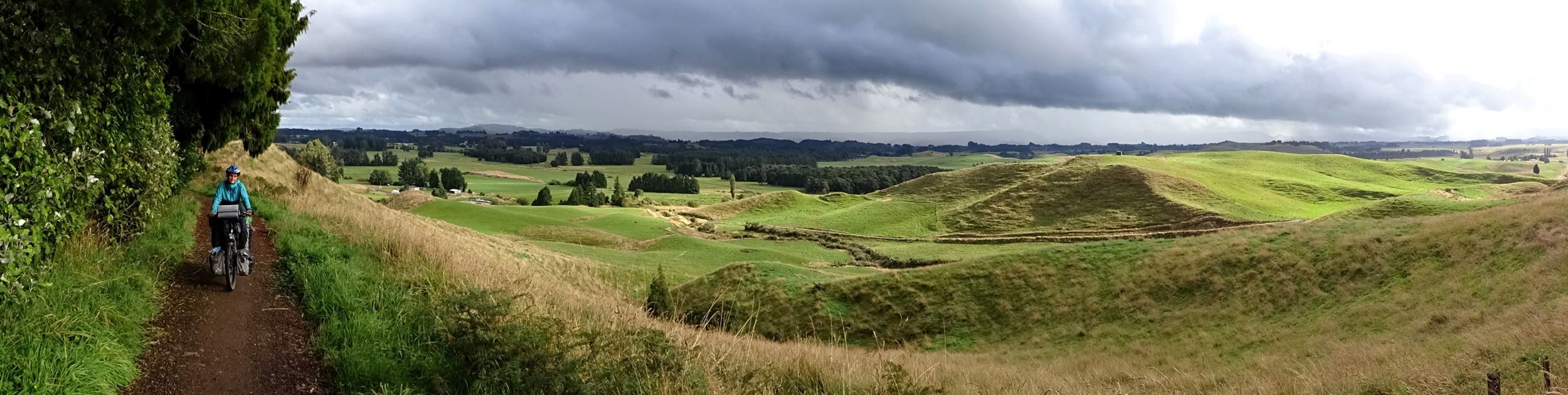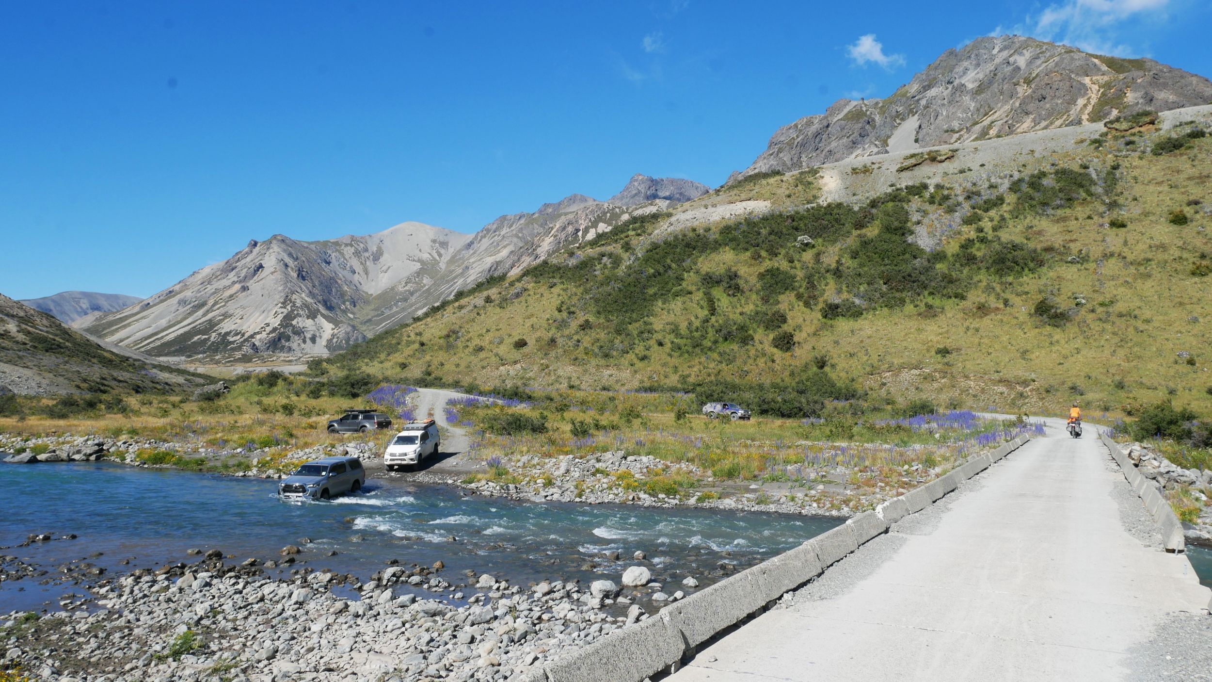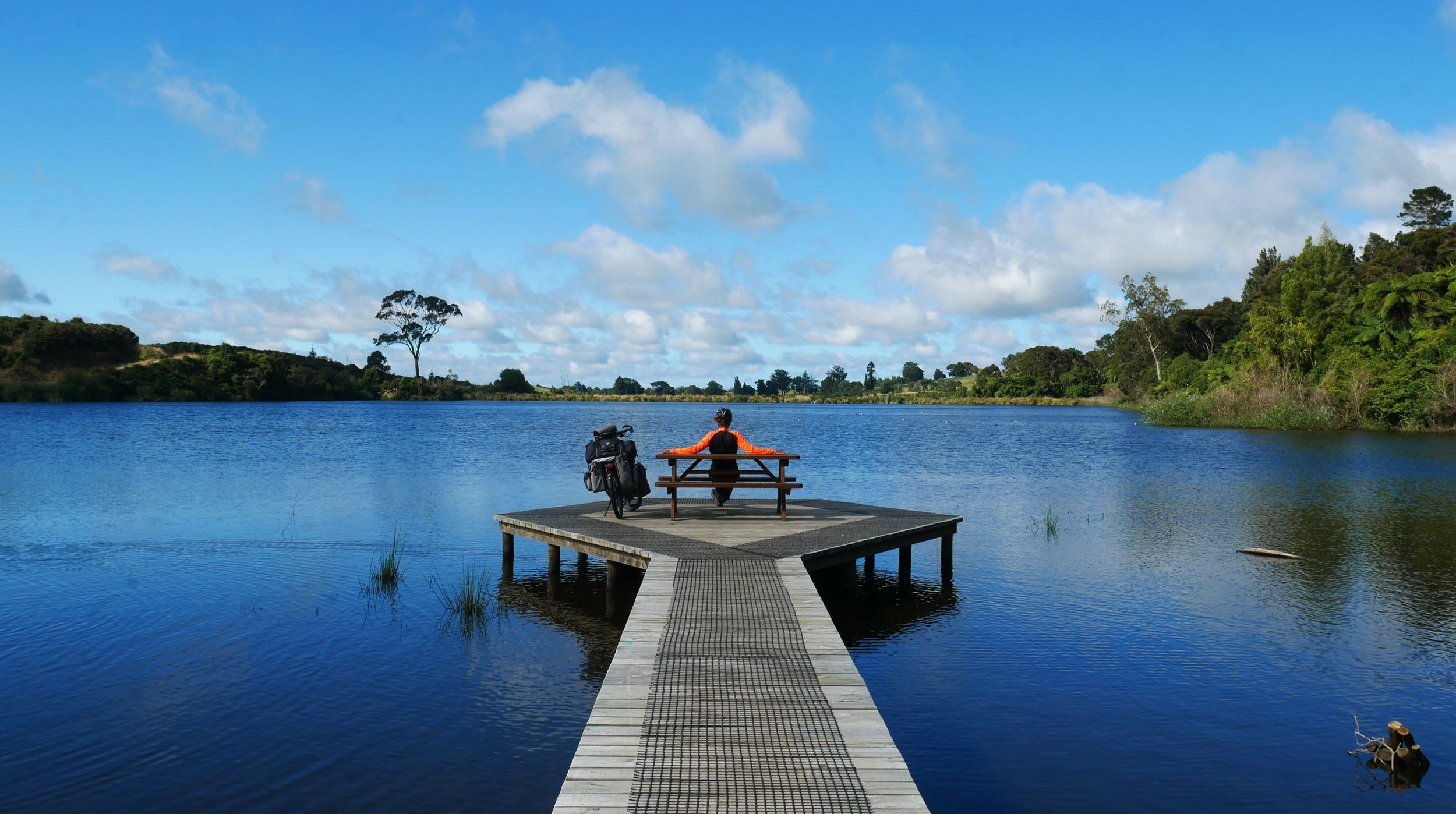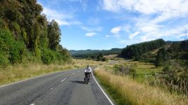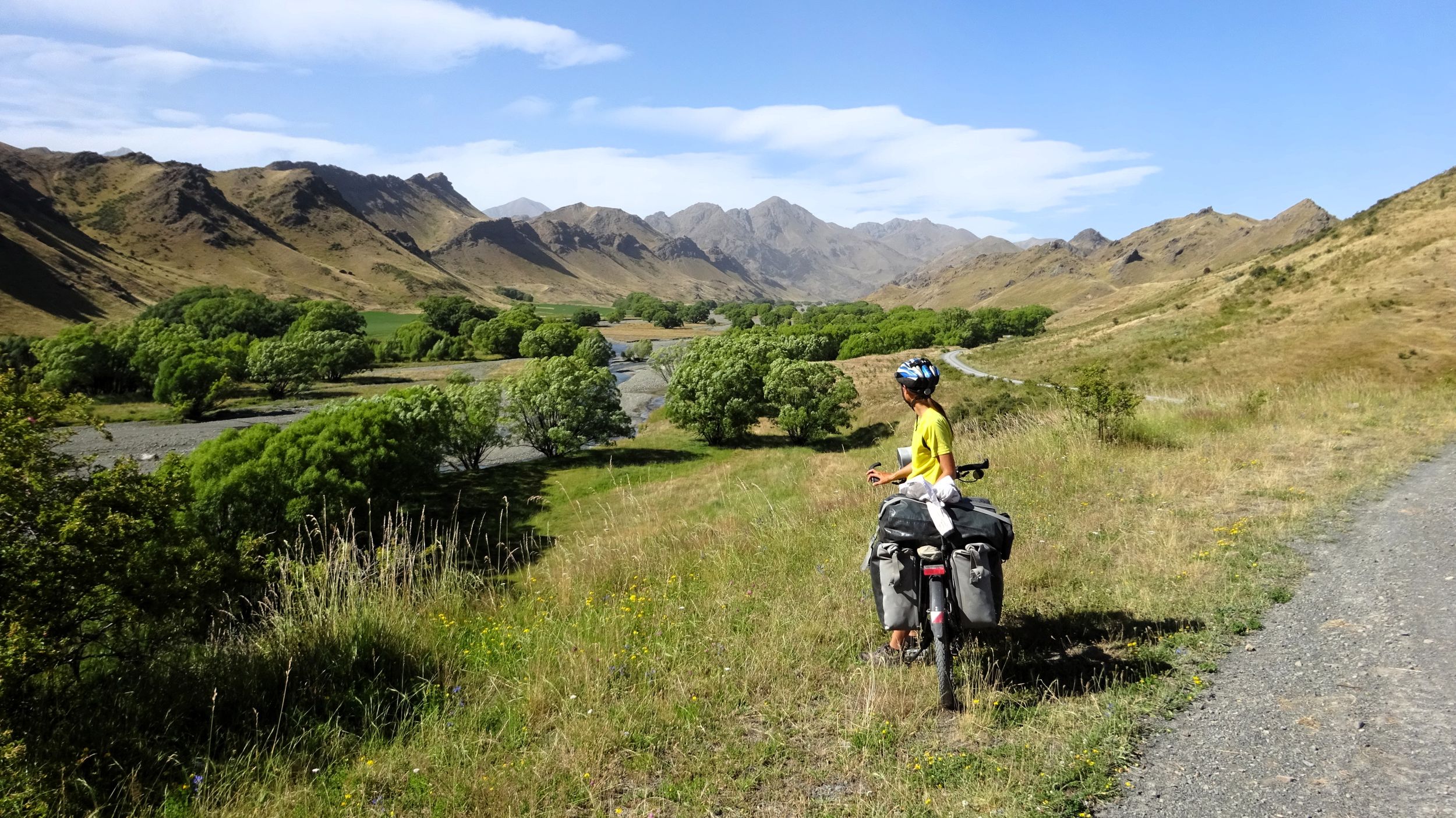 Wir haben noch eine gute Woche Zeit, bevor unsere Fähre auf die Nordinsel geht – und die nutzen wir für einen ausgedehnten Schlenker über die Rainbow Road und Molesworth Route. Es ist ein spektakulärer Umweg in leerem unbewohntem Gebirgsland, durch karge weite Täler, entlang reißender türkiser Flüsse, über kurze aber sehr steile Pässe (darunter auch der höchste Pass Neuseelands) und das alles bei heftigen Sturmböen aus allen Richtungen. Dabei erinnert uns nicht nur die Landschaft, sondern auch die Qualität der Schotterstraßen an unsere Abenteuer in Zentralasien. Im Süden der Nordinsel erreichen wir an einer unscheinbaren Straßenkreuzung den Punkt unserer Tour, der am weitesten von unserem Tourstart am Karlsruher Schloss entfernt ist – ab jetzt geht’s also im Prinzip wieder Richtung Heimat! Ansonsten beschäftigt uns auf der Nordinsel bisher vor allem ein Thema: Regen. In den 10 Tagen seit der Fährüberfahrt haben wir die Sonne kaum gesehen, das Zelt nass einzupacken wird zum Standard. Doch zu unserem Glück werden wir von der neuseeländischen Gastfreundschaft nicht im Stich gelassen.
