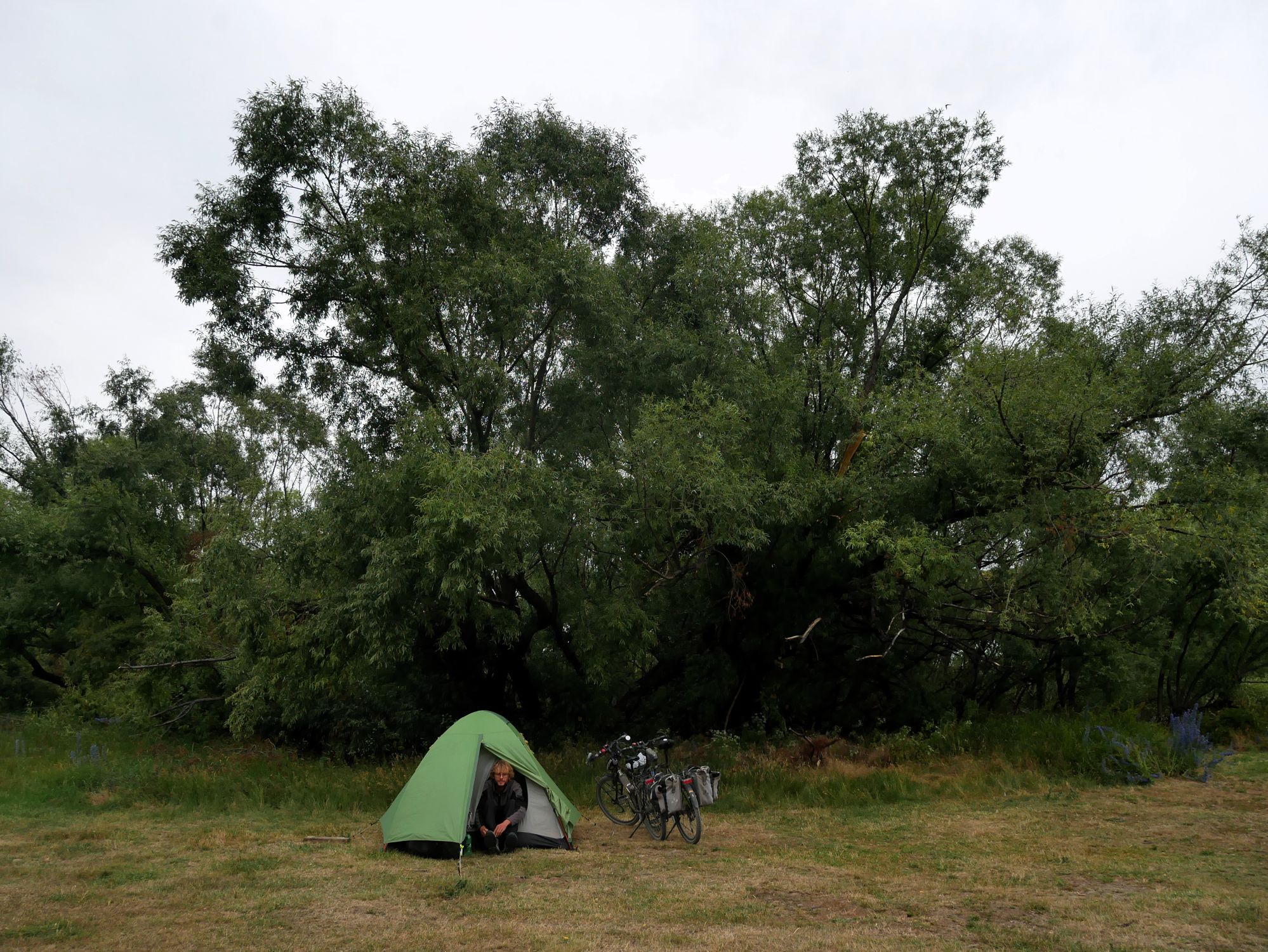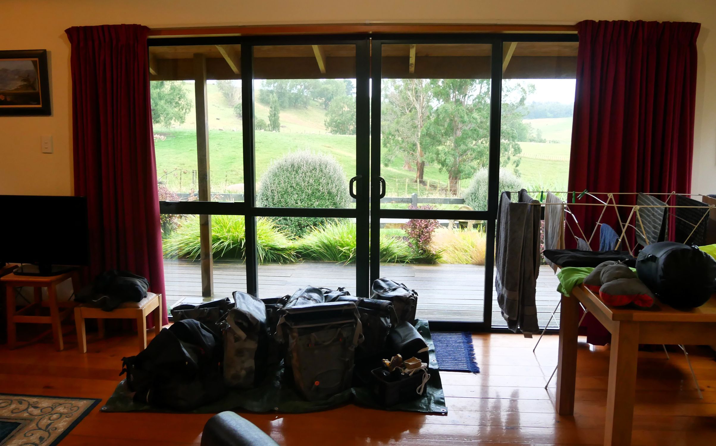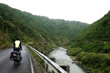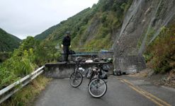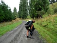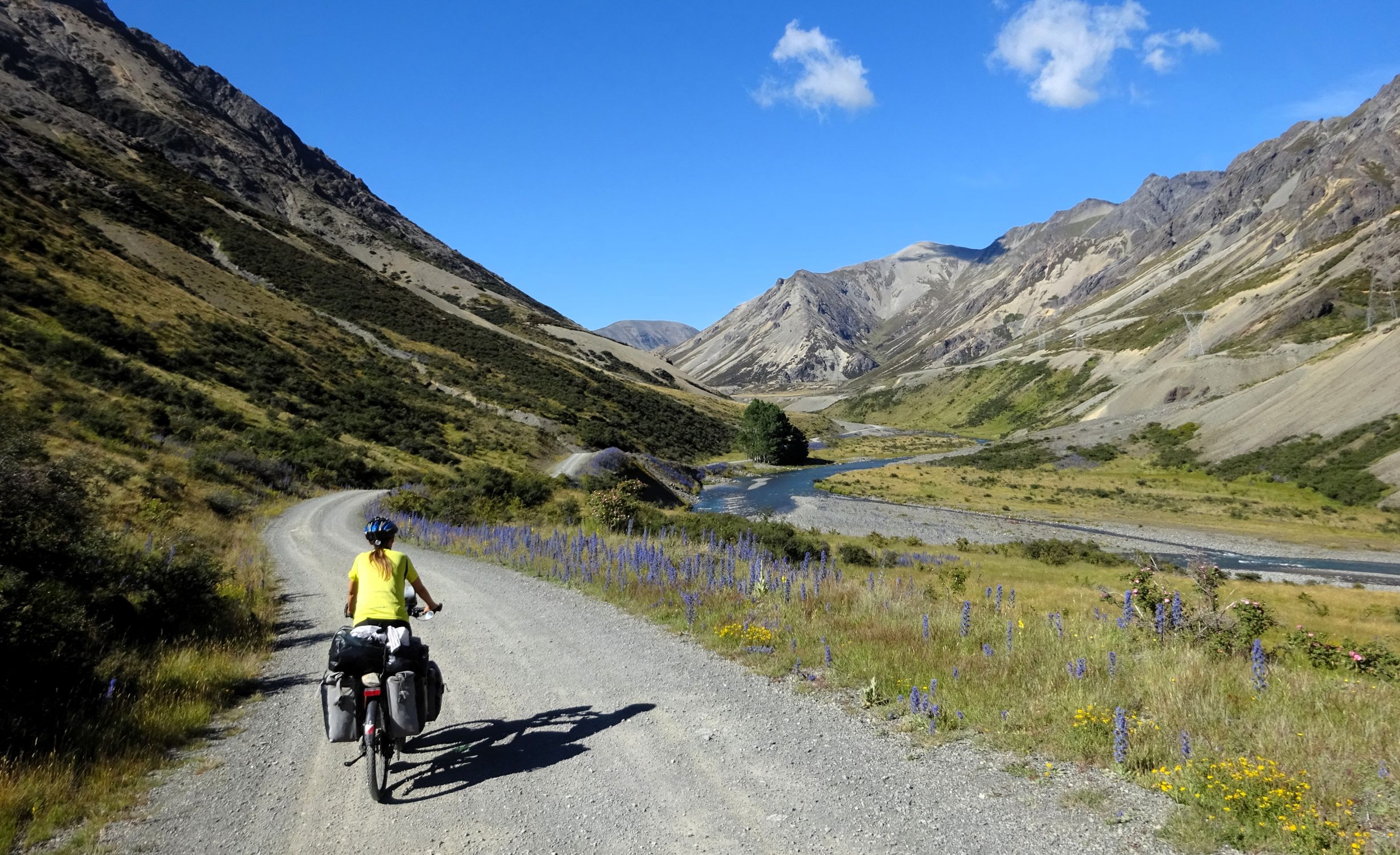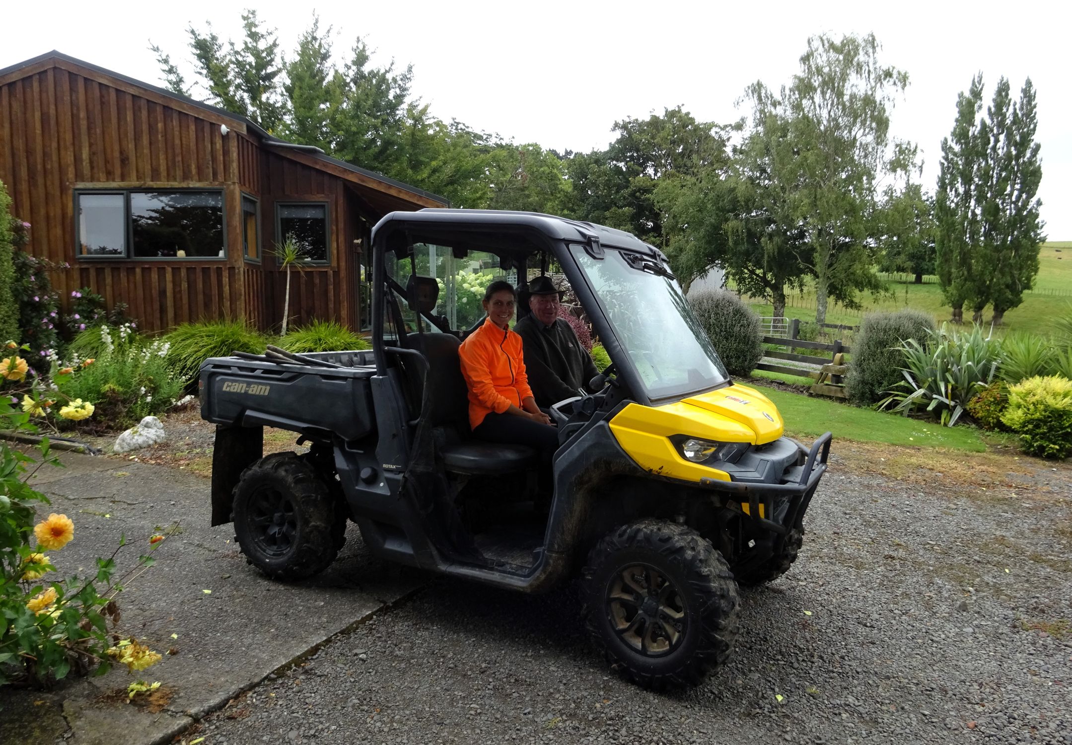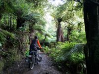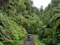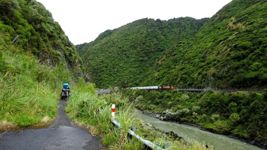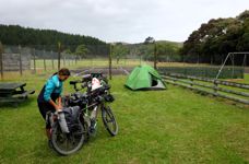Wir haben noch eine gute Woche Zeit, bevor unsere Fähre auf die Nordinsel geht – und die nutzen wir für einen ausgedehnten Schlenker über die Rainbow Road und Molesworth Route. Es ist ein spektakulärer Umweg in leerem unbewohntem Gebirgsland, durch karge weite Täler, entlang reißender türkiser Flüsse, über kurze aber sehr steile Pässe (darunter auch der höchste Pass Neuseelands) und das alles bei heftigen Sturmböen aus allen Richtungen. Dabei erinnert uns nicht nur die Landschaft, sondern auch die Qualität der Schotterstraßen an unsere Abenteuer in Zentralasien. Im Süden der Nordinsel erreichen wir an einer unscheinbaren Straßenkreuzung den Punkt unserer Tour, der am weitesten von unserem Tourstart am Karlsruher Schloss entfernt ist – ab jetzt geht’s also im Prinzip wieder Richtung Heimat! Ansonsten beschäftigt uns auf der Nordinsel bisher vor allem ein Thema: Regen. In den 10 Tagen seit der Fährüberfahrt haben wir die Sonne kaum gesehen, das Zelt nass einzupacken wird zum Standard. Doch zu unserem Glück werden wir von der neuseeländischen Gastfreundschaft nicht im Stich gelassen.