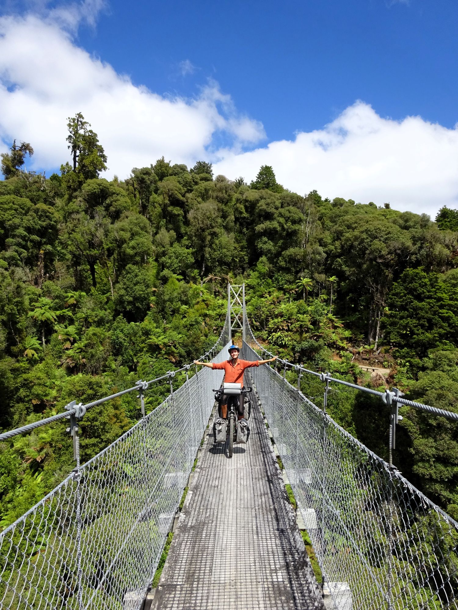 Kim und Owen sind unsere Rettungsinsel in dem zweiwöchigen Meer aus Regen, über den wir bereits in der letzten Episode berichtet haben. Bei ihnen dürfen wir die Tage bis zum nächsten Sonnenschein aussitzen und Kim zeigt uns in dieser Zeit nicht nur ihre Farm, sondern auch einen magischen Ort voller „Glowworms“. Außerdem ermöglichst es uns Kim, den meistgewanderten Wanderweg Neuseelands zu bewandern, die Tongariro Alpine Crossing. Als das Wetter es endlich wieder zulässt, überschreiten wir nicht nur unsere 50.000-Kilometer-Marke, sondern erreichen auch den berühmten Timber Trail – ein 80 km langer Radweg durch abgelegene Waldgebiete, der vor allem auch mit den längsten und höchsten Radweg-Hängebrücken Neuseelands auftrumpft. Schließlich erreichen wir Auckland, wo unser Host Libby eine riesige Hilfe bei unseren Flugvorbereitungen ist – wofür wir wegen einer spontanen Flugplanänderung von Air New Zealand auch nicht besonders viel Zeit haben. Wohin unser Weiterflug geht? Auch das klären wir in dieser Episode auf!