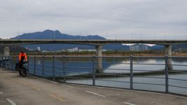 Mit der Fähre setzen wir von Japan in die Hafenstadt Busan im Südosten Südkoreas über. Damit kehren wir nach 9 Monaten wieder zurück aufs Asiatische Festland und fahren gleichzeitig nach über einem Jahr im Linksverkehr wieder auf der rechten Straßenseite. Wenn wir denn überhaupt mal auf Straßen fahren – denn Südkorea ist unter Radfahrern berühmt für sein gut ausgebautes Netz an Flussradwegen, das für ein asiatisches Land absolut einzigartig ist. Sogar weltweit einzigartig ist das Stempelsystem, in dem man spielerisch motiviert wird, auch wirklich möglichst viele der Radwege, die das Land zu bieten hat, abzufahren. Das macht Südkorea zum perfekten Transitland, denn auf den Flussradwegen lässt sich das Land ausgesprochen effizient und komfortabel durchqueren, wobei wir aber gleichzeitig am Wegesrand wenig Interessantes entdecken, was Südkorea als eigentliches Reiseziel lohnenswert machen würde. Und sobald wir das Radwegenetz mal verlassen, haben wir mit ziemlich unangenehmen Tunneln zu kämpfen, wodurch schließlich auch die Polizei auf uns aufmerksam wird. Und so sind die südkoreanischen Höhepunkte für uns zum einen die hübschen Pavillons, die absolut perfekte Zeltplätze sind, und zum anderen das ausgesprochen nette Zusammentreffen mit den Radreise-Kollegen Dai sowie Kyra & Michael.