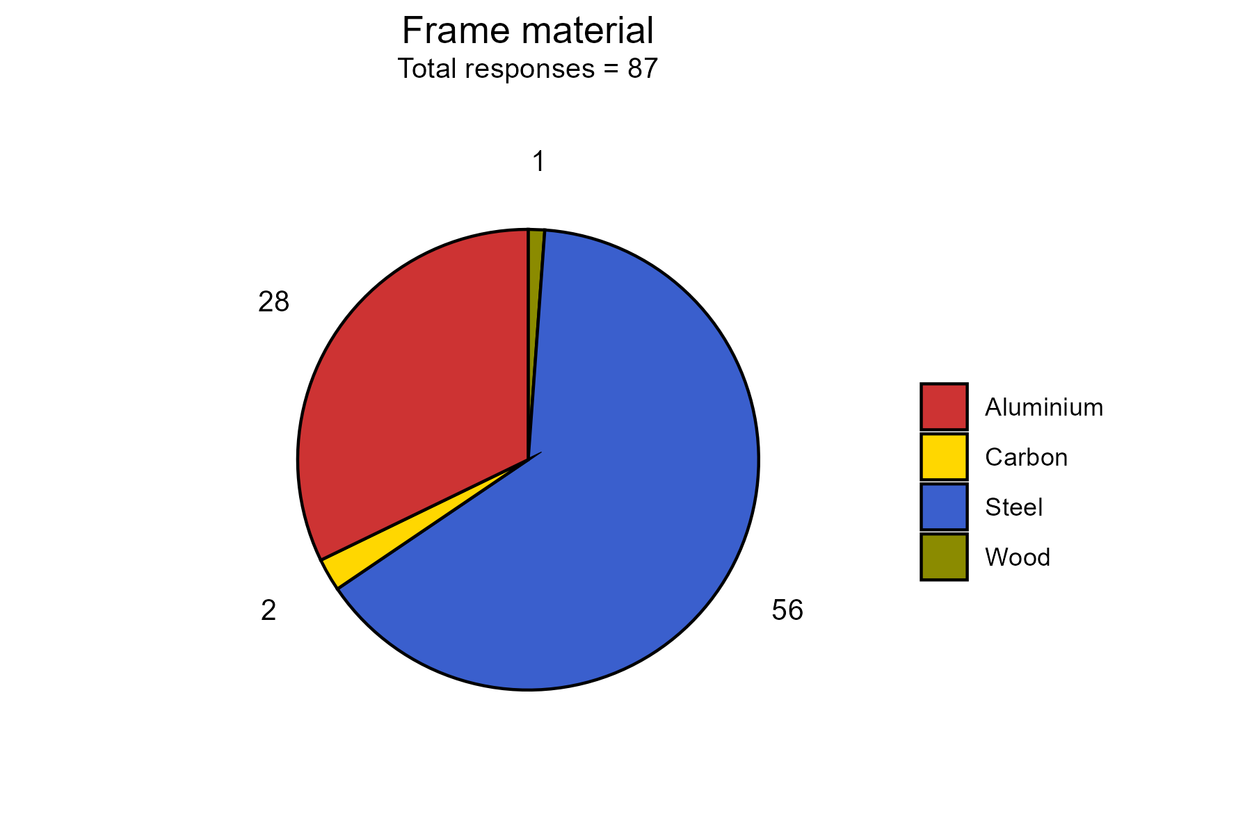 Most bikes are steel frame, with some aluminum bikes, too. 2 participants ride a carbon bike and 1 rides a self-made wooden bike.