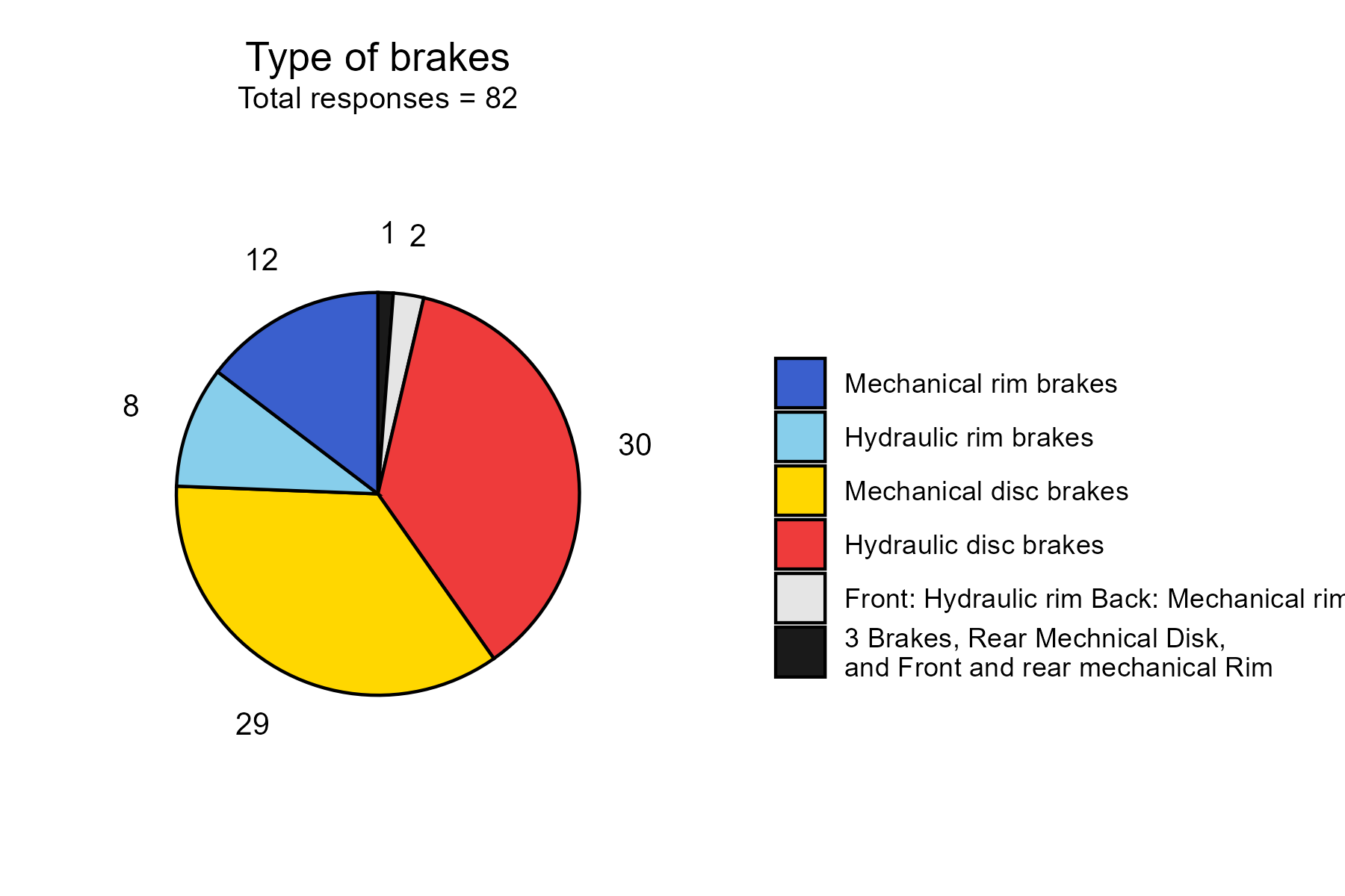 People have all kinds of brake systems. Disc brakes, mechanical or hydraulic, are the most common.