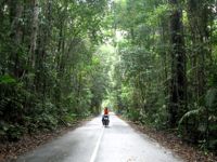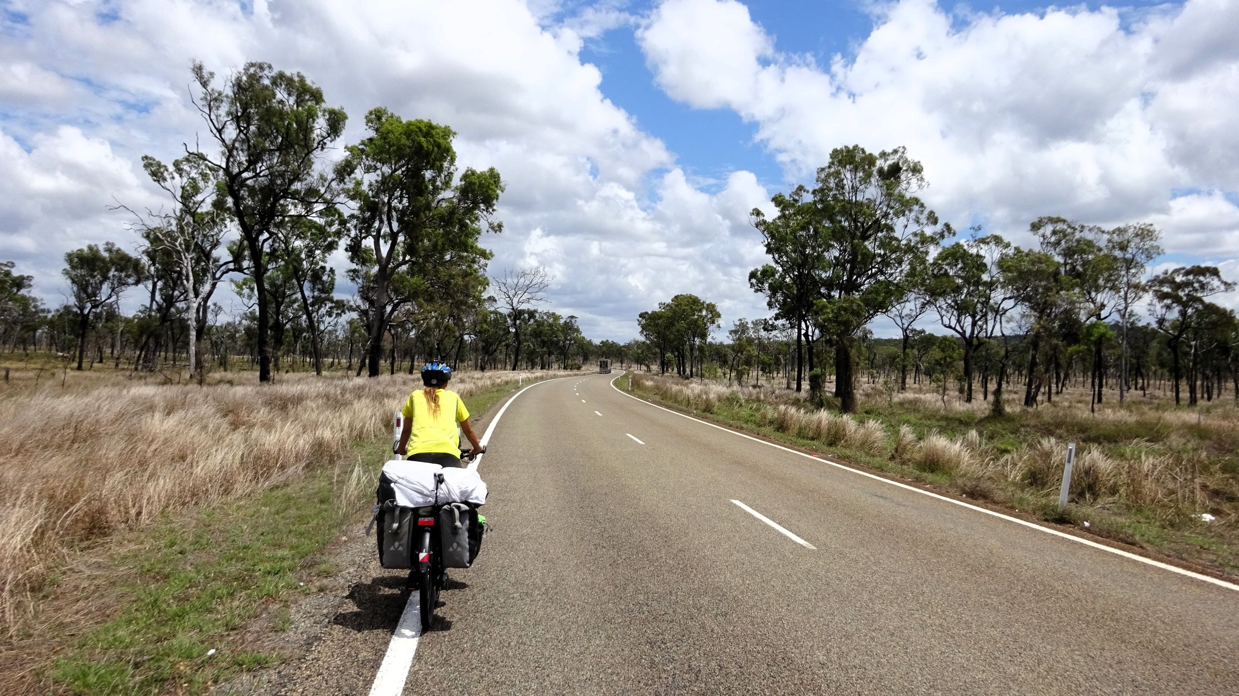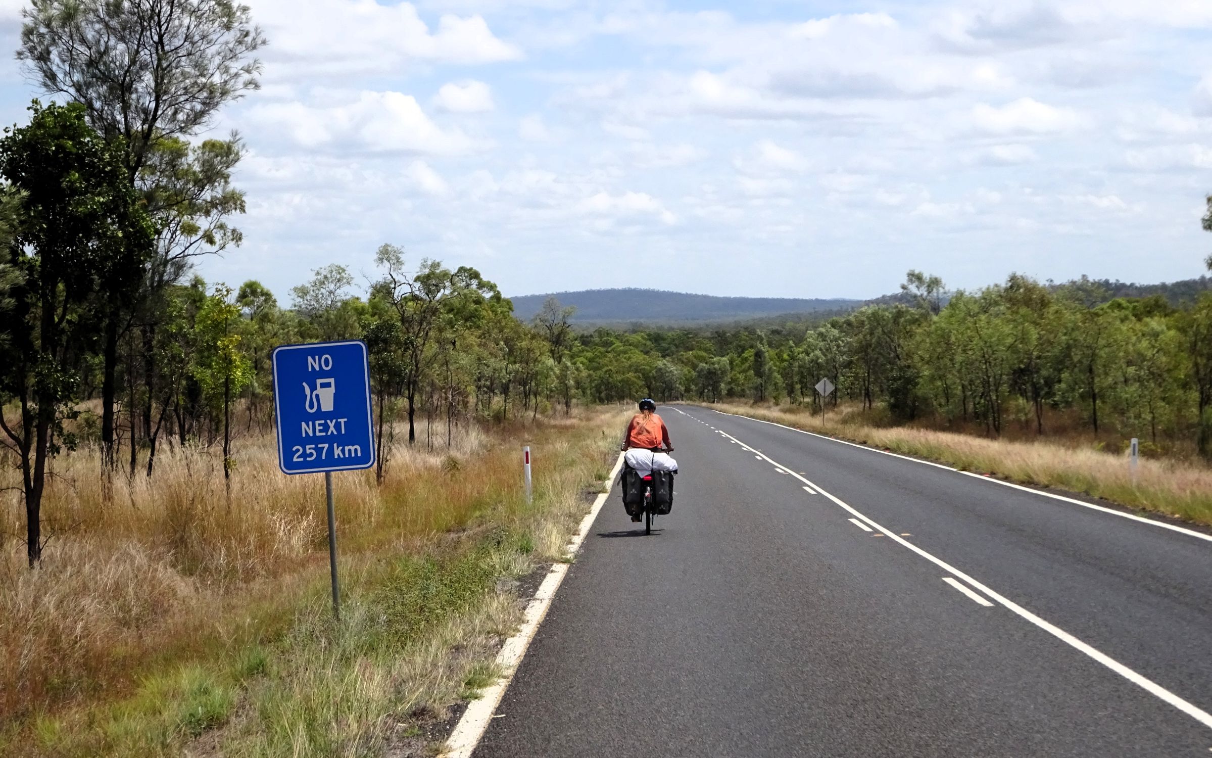 After our campervan relocation from Darwin to Cairns (see episode 88), we now set off from Cairns on our bikes heading south. We don’t want to follow the rather busy coast, but rather spend a few hundred kilometers in the sparsely populated hinterland. To do this, we first have to climb the Atherton Tablelands and cycle through tropical rainforest for the last time on this tour. We experience one of the most beautiful encounters with people on this tour, but also the probably most unpleasant one. Then it’s off to the outback. 430 km lie between the two neighboring settlements of Mt. Garnet and Hughenden, and in this episode, we report on the challenges, but also the elation, of our first stretch of Australian bushland.